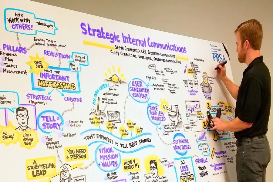 Graphic recording begins with having a graphic recording artist, also known as a scribe or graphic recorder in the meeting.